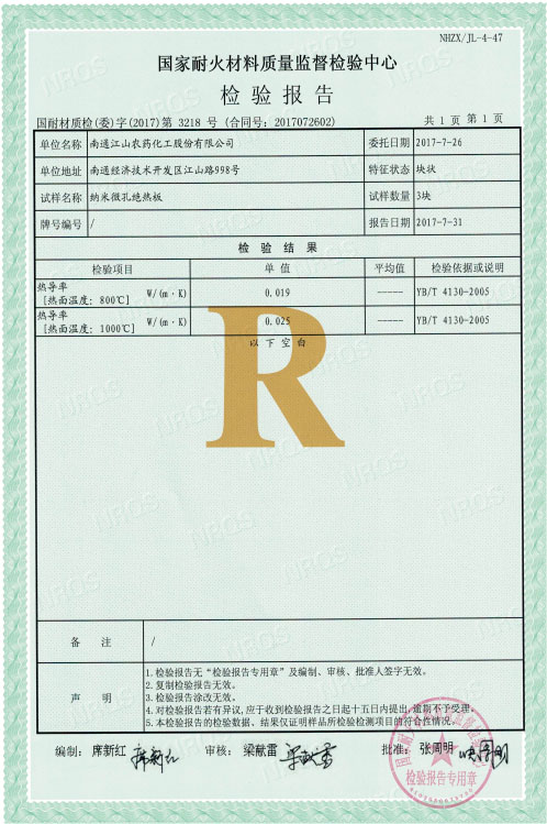 國家耐火材料質(zhì)量監(jiān)督檢驗(yàn)中心檢測報告