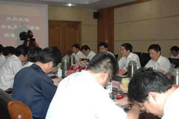 6月6日上午,陳照東董事長主持召開公司營運發(fā)展專題匯報會,陳金明總經(jīng)理代表領導班子向常務副市長藍紹敏及市有關部門領導作了專題匯報。陳總簡要介紹了公司概況、發(fā)展思路、保障體系等方面情況,并提出需政府協(xié)調解決的幾個問題。